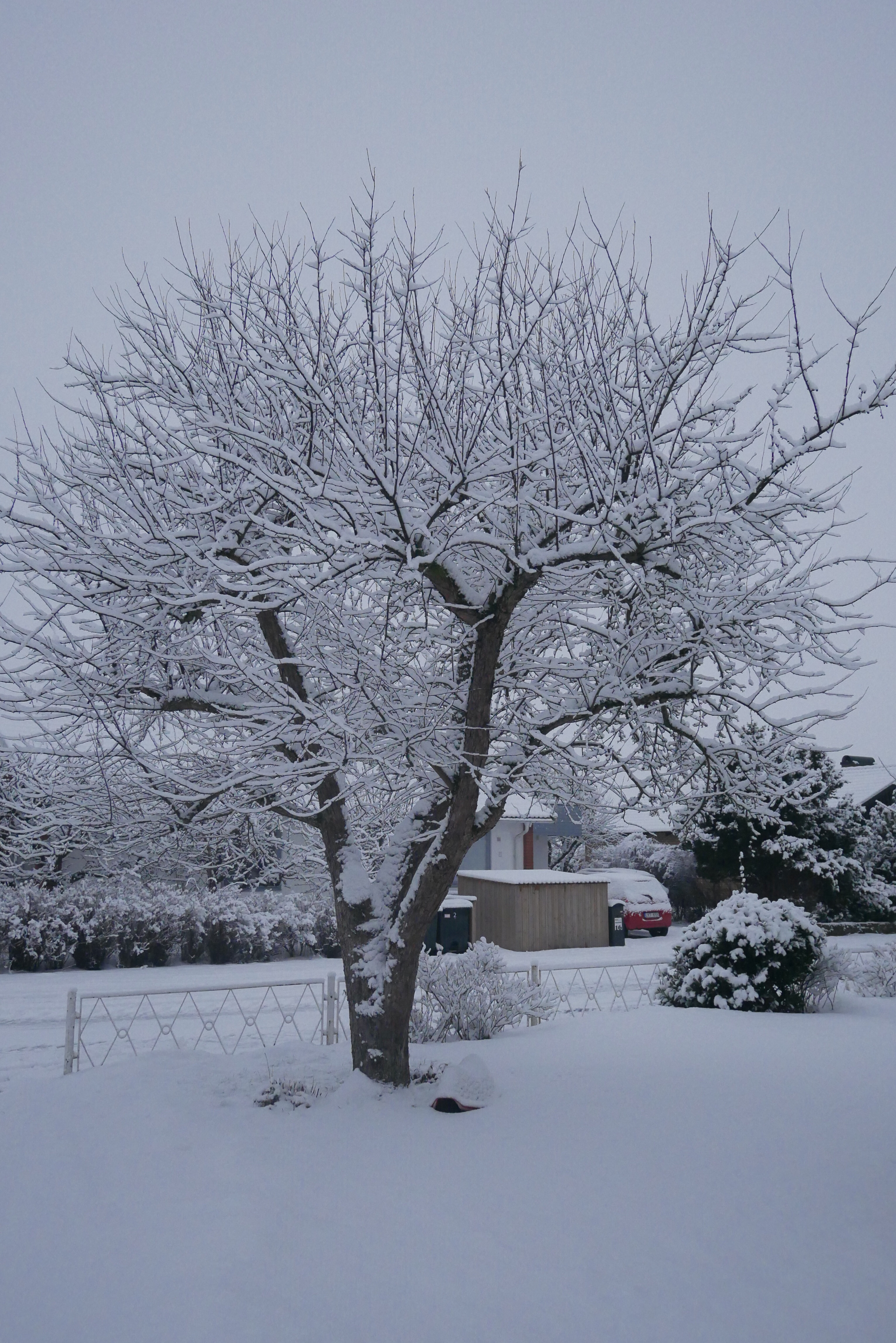 Sitting side by side, staring at the branches turned white.