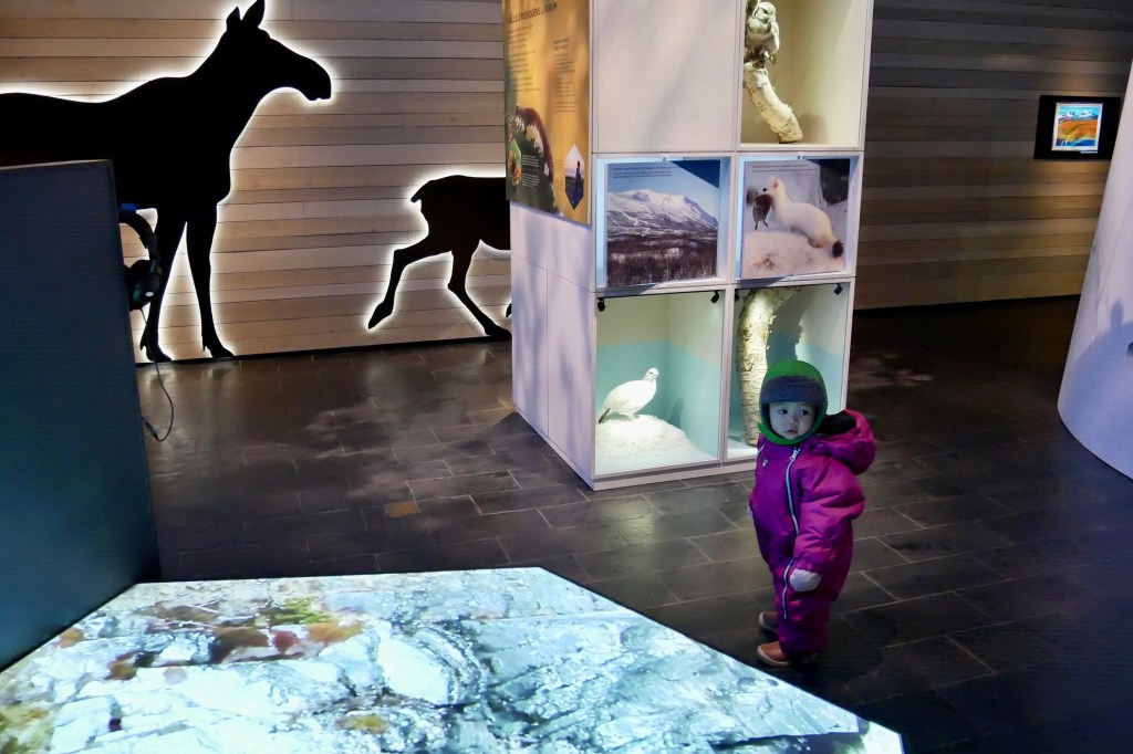 After Klas dropped us off, Zaki explored the canyon again while me and the kids went back to Naturum. Naturum Abisko is like a gallery where you can find nature guides, exhibitions, film and lecture hall, library and souvenir shop. It is located right next to STF Abisko Turistsstation and is quite nice for kids despite its small size.