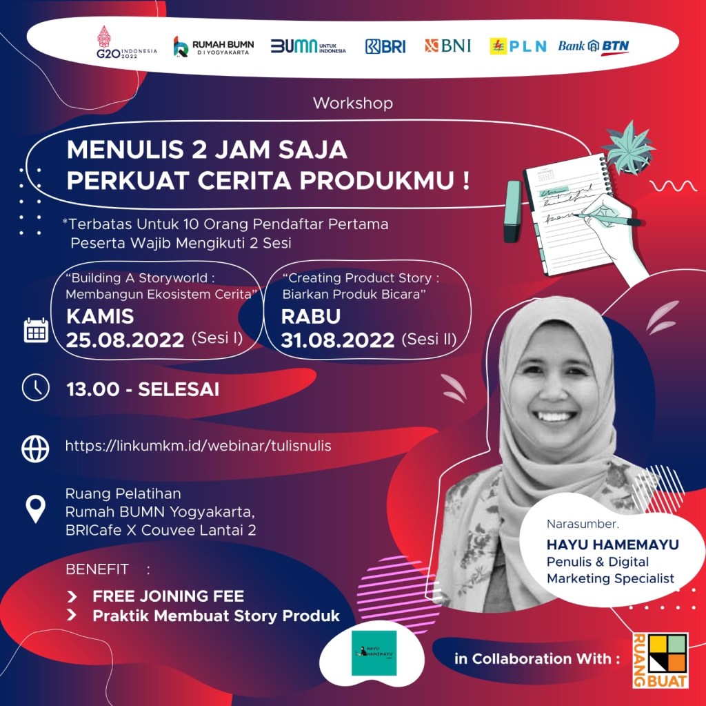 Sejak edisi perdana Juli itu, Kelas Menulis 2 Jam Saja juga sudah ambil bagian dalam program dari Rumah BUMN dan saat ini sedang menyiapkan kelas online.